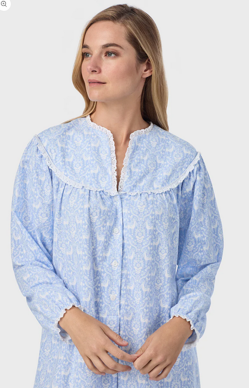 Lanz of Salzburg Women's Blue Nordic Tyrolean Flannel Gown