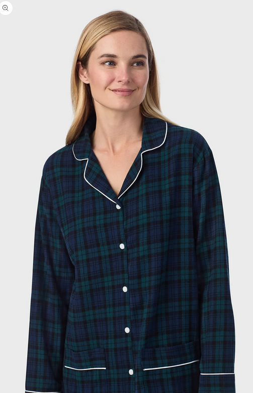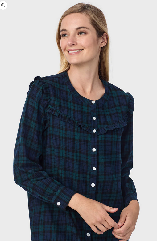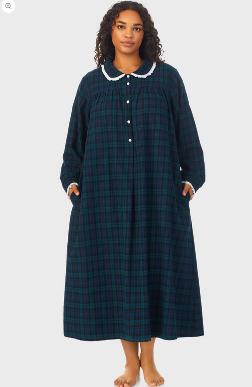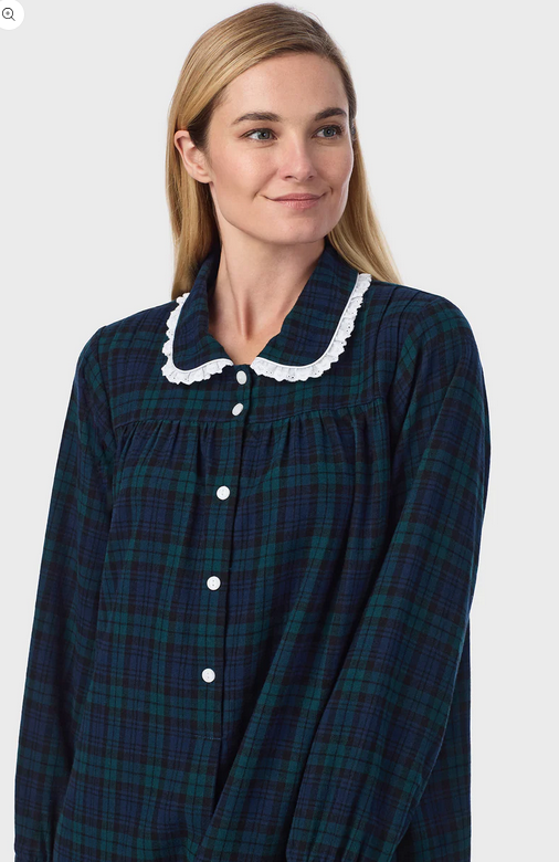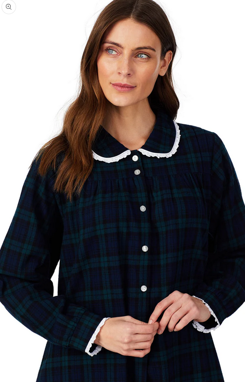 Lanz of Salzburg Women's Black Watch Peterpan Flannel Gown Plus