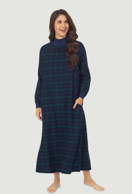 Lanz of Salzburg Women's Black Watch Plaid Flannel Gown Petite