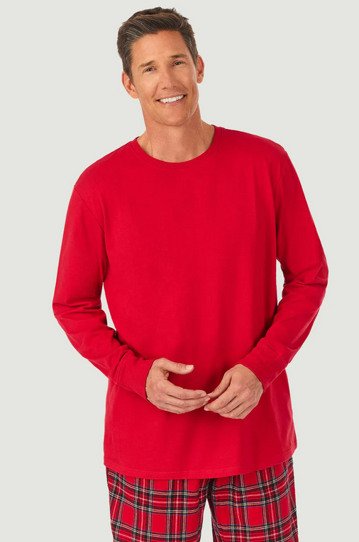 Lanz of Salzburg Men's Red Tartan Knit & Flannel Pj Set
