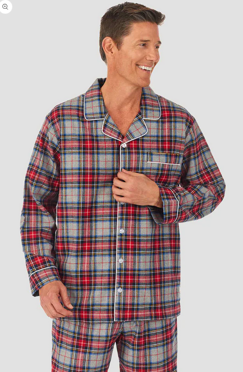 Lanz of Salzburg Men's Grey Plaid Flannel Pajama