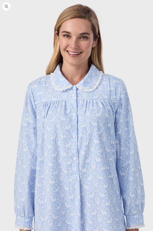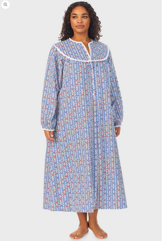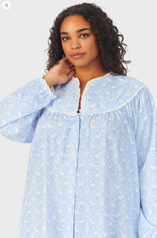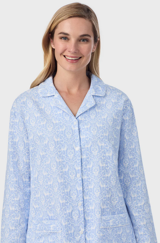 Lanz of Salzburg Women's Blue Nordic Tyrolean Flannel Gown Plus