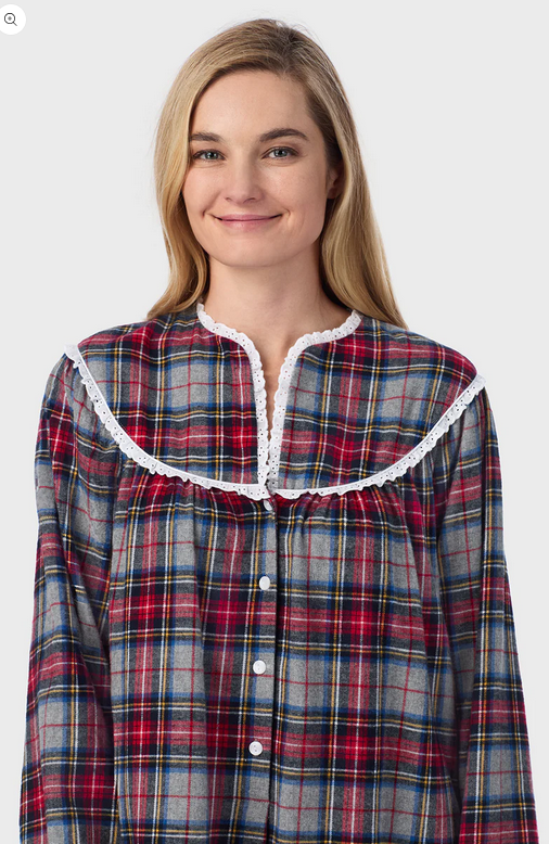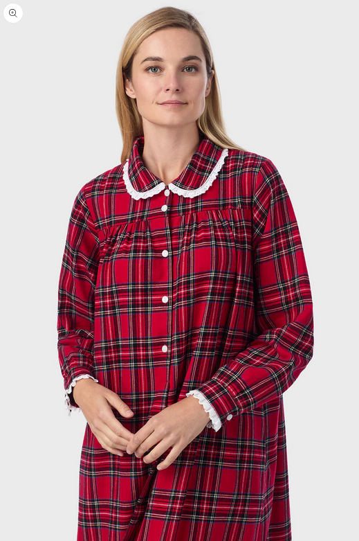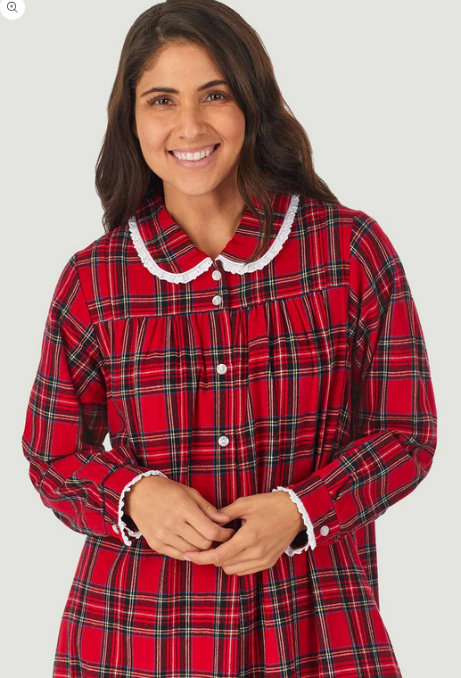Lanz of Salzburg Women's Red Tartan Peter Pan Flannel Gown