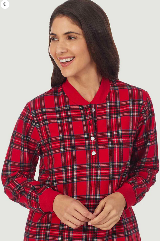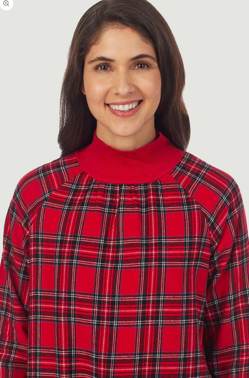Lanz of Salzburg Women's Red Tartan Pop Over Flannel Gown