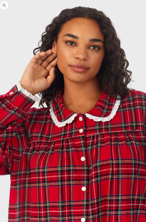 Lanz of Salzburg Women's Red Tartan Peter Pan Flannel Gown Plus