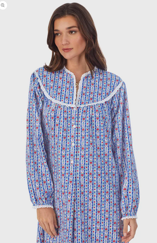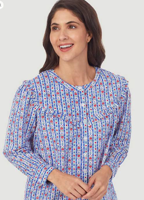 Lanz of Salzburg Women's Classic Blue Tyrolean Stripe Flannel Nightgown
