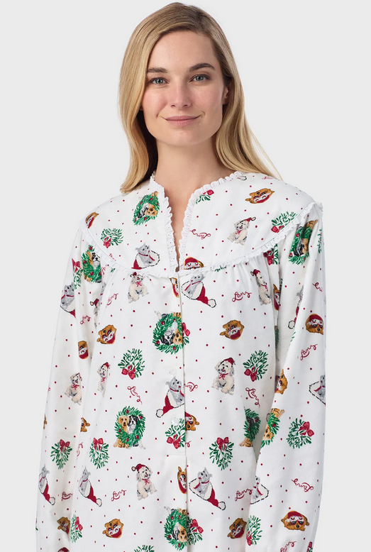 Lanz of Salzburg Women's Holiday Puppies Flannel Gown
