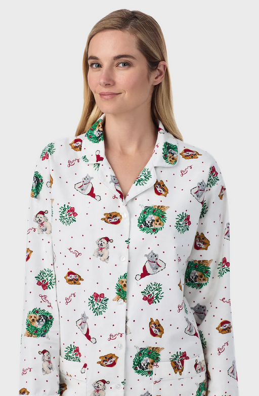 Lanz of Salzburg Women's Holiday Puppies Classic Notch Pajama