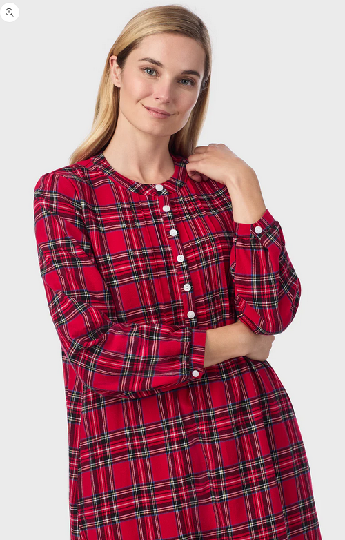 Lanz of Salzburg Women's Sweet & Simple Red Tartan Flannel Gown