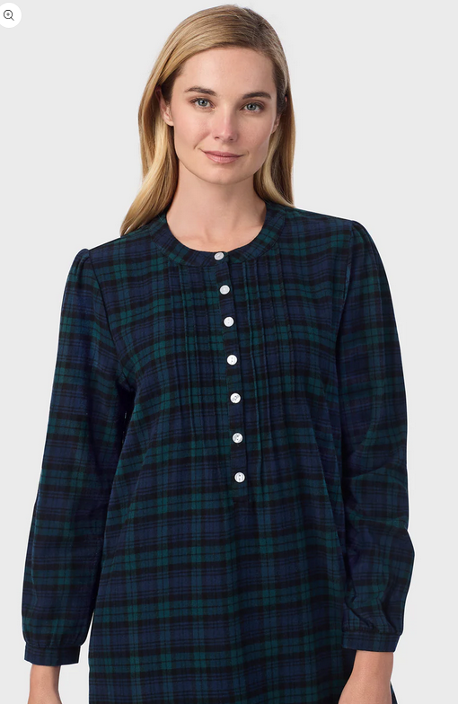 Lanz of Salzburg Women's Sweet & Simple Black Watch Flannel Gown