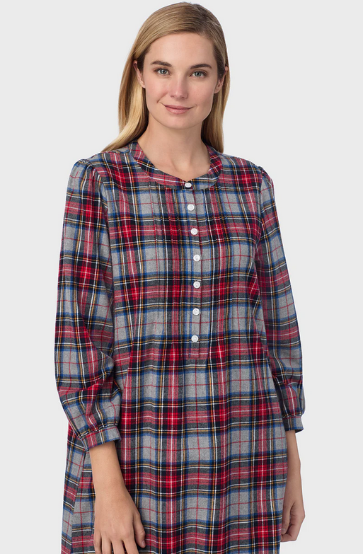 Lanz of Salzburg Women's Sweet & Simple Grey Plaid Flannel Gown