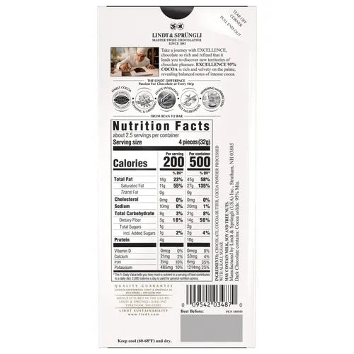 Lindt Chocolate 95% Cocoa Dark Chocolate EXCELLENCE Bar (2.8 oz)