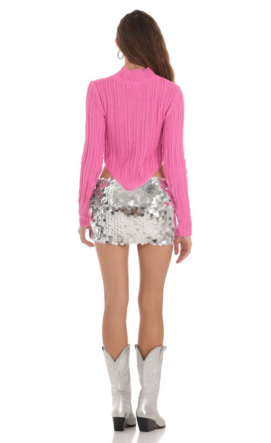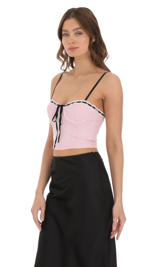 Lucy in the Sky Black Ribbon Lace Crop Top in Pink