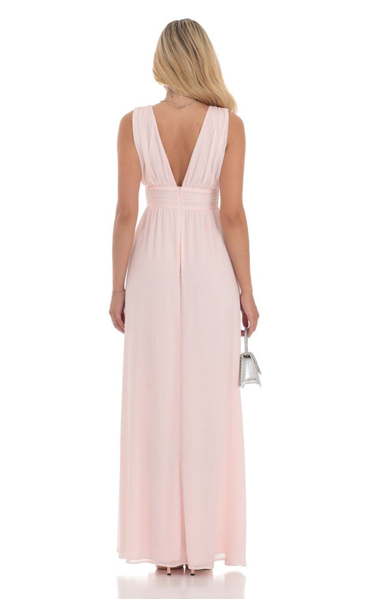 Lucy in the Sky Chiffon Plunge Maxi Dress in Pink