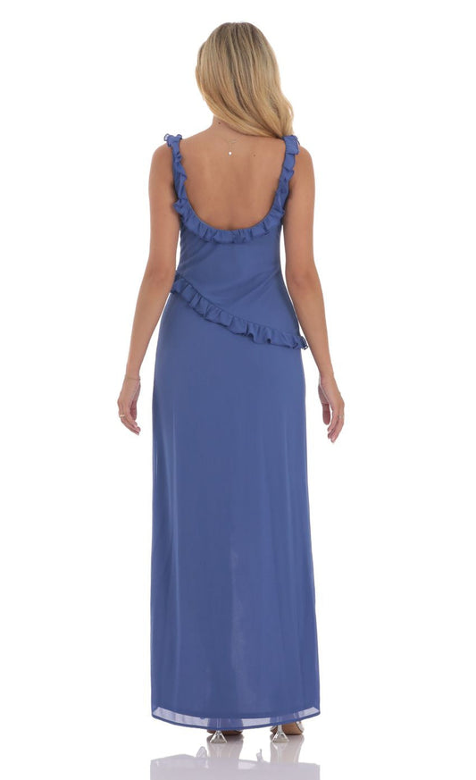 Lucy in the Sky Chiffon Ruffle Dress in Blue