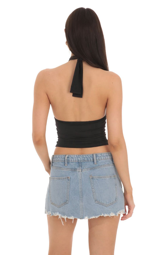 Lucy in the Sky Crochet Off Shoulder Two Piece Set in Black