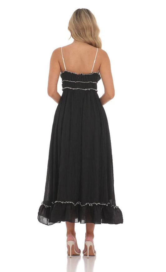 Lucy in the Sky Double Tie Flowy Maxi Dress in Black