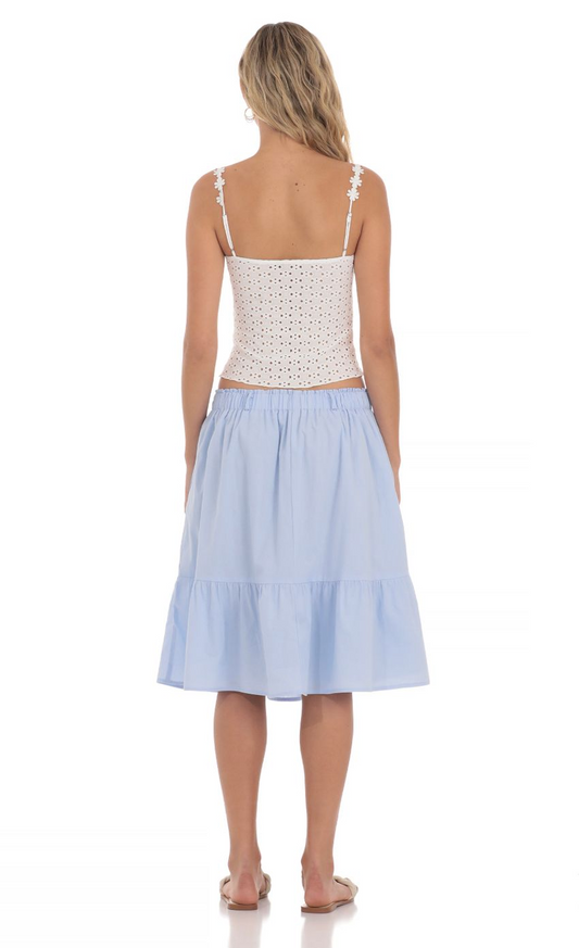 Lucy in the Sky Drawstring Midi Skirt in Light Blue