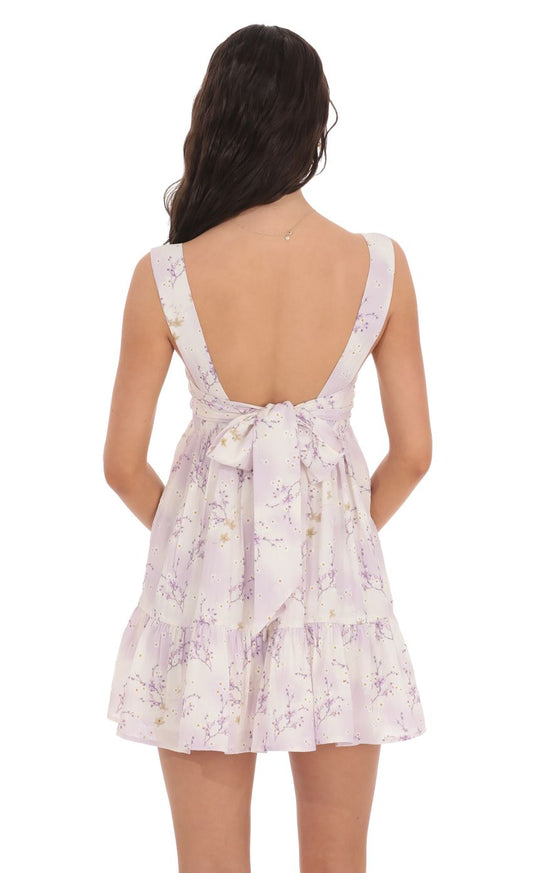 Lucy In The Sky Floral Bow Tie Fit and Flare Dress in Purple
