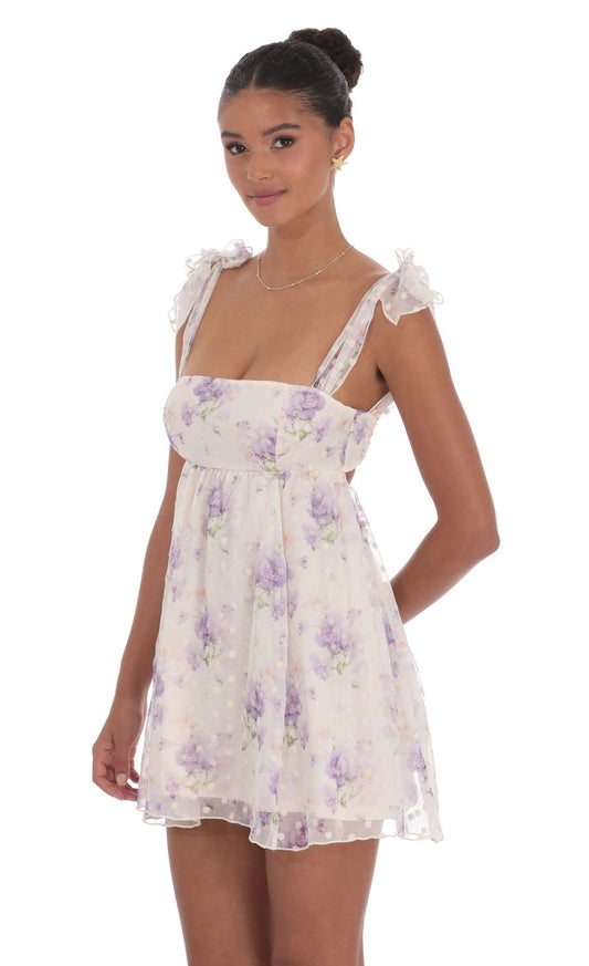 Lucy In The Sky Floral Babydoll Dress in Lavender Cream
