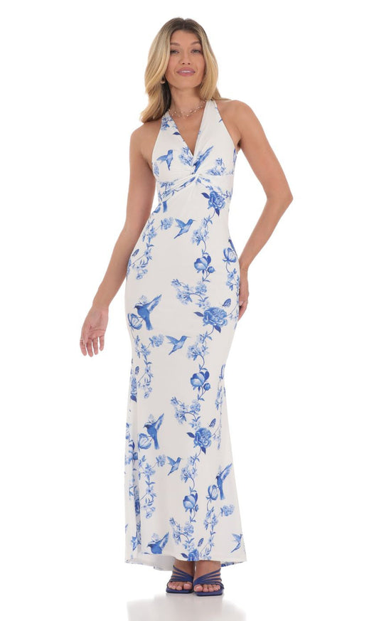 Lucy in the Sky Floral Front Twist Maxi Dress in White