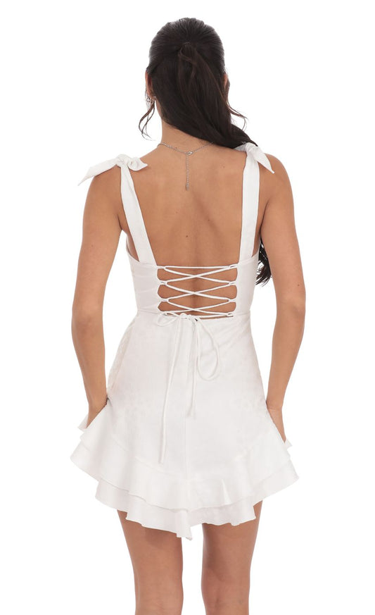 Lucy In The Sky Floral Jacquard Ruffle A-line Dress in White