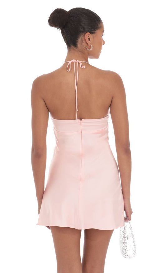 Lucy In The Sky Flower Satin Halter Dress in Pink