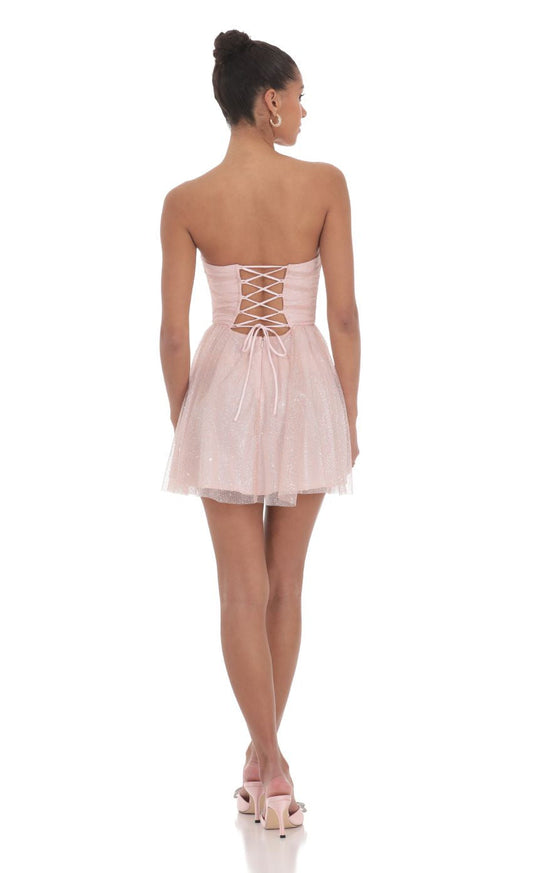Lucy in the Sky Glitter Strapless A-Line Dress in Pink