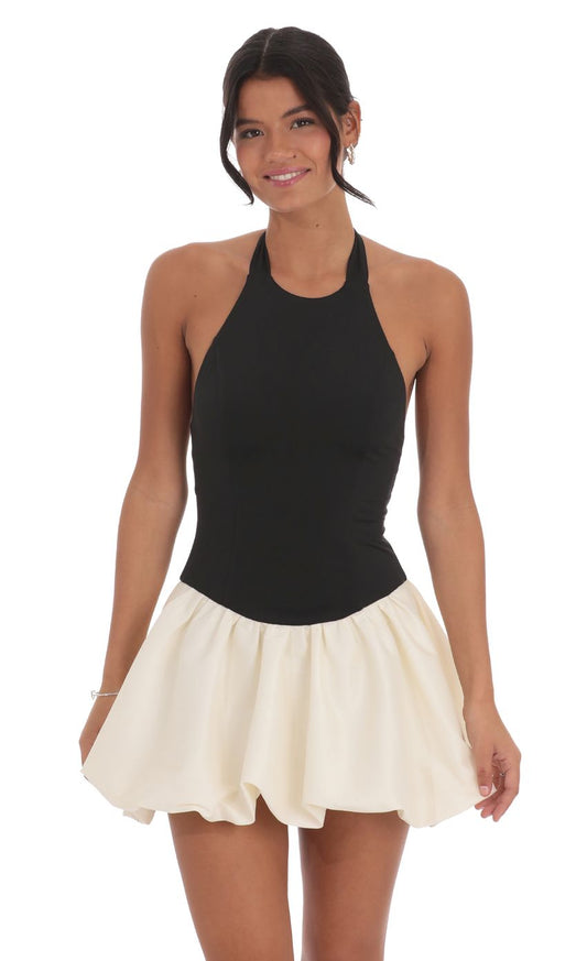 Lucy in the Sky Halter Bubble Dress in Black and White