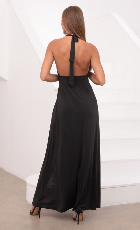 Lucy in the Sky Halter Maxi Dress in Black