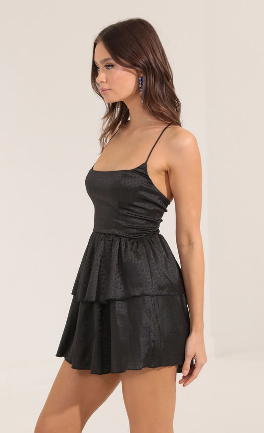 Lucy In The Sky Leopard Jacquard Ruffle Dress in Black