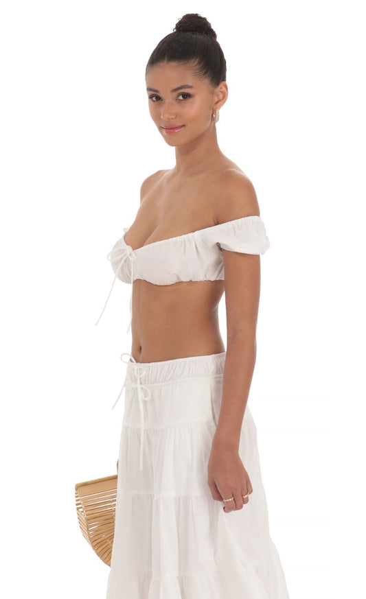 Lucy in the Sky Off Shoulder Crop Top in White (x2)