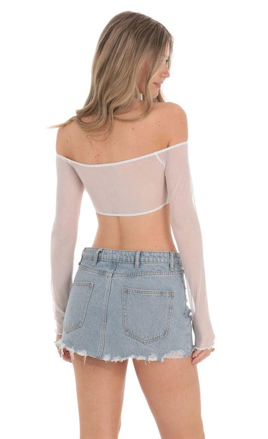 Lucy in the Sky Off Shoulder Top in White and Gold
