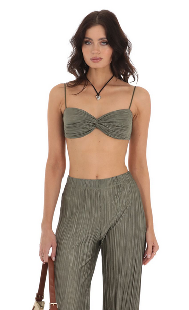 Lucy in the Sky Pleated Shimmer Two Piece Set in Pink