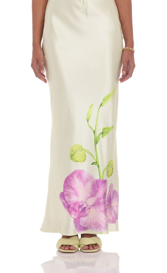 Lucy In The Sky Satin Front Tie Floral Maxi Dress in Pastel Green