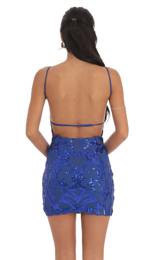 Lucy In The Sky Sequin Bodycon Dress in Royal Blue