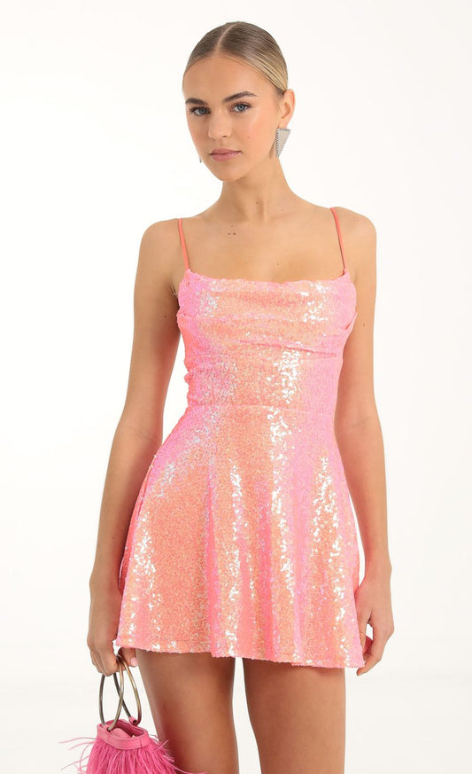 Lucy In The Sky Sequin Cowl Neck Dress in Pink