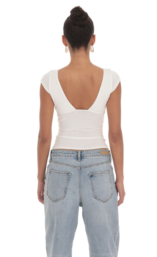 Lucy in the Sky Short Sleeve V-Neck Top in Blue