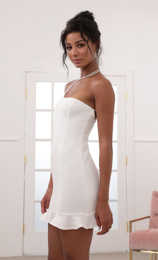 Lucy In The Sky Shoulder Ruffle Dress in White