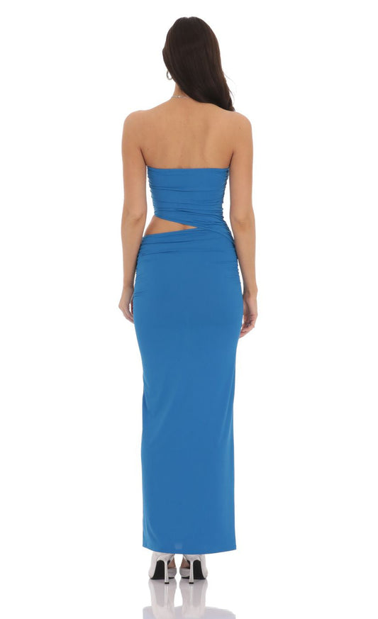 Lucy in the Sky Strapless Cutout Maxi Dress in Blue