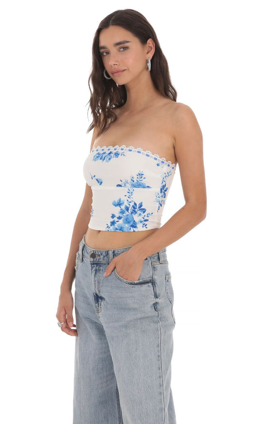 Lucy in the Sky Strapless Floral Top in White