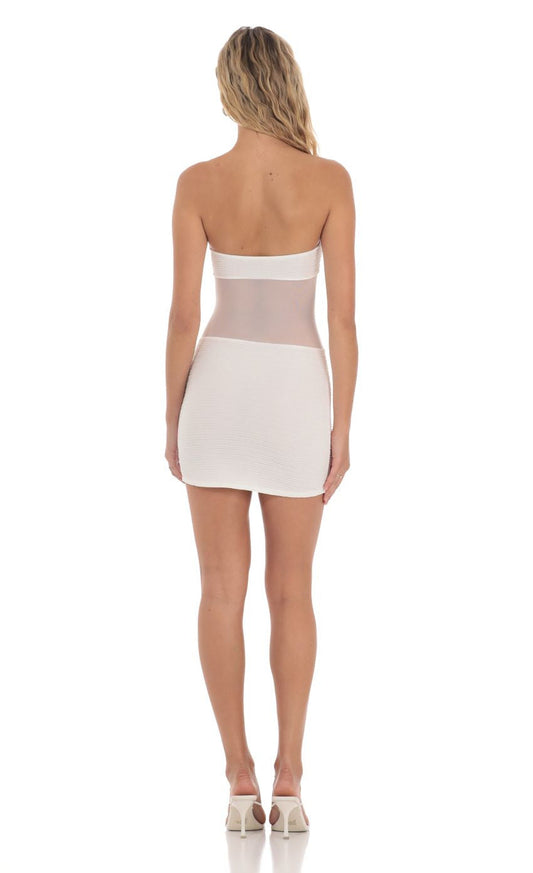 Lucy in the Sky Strapless Mesh Cutout Dress in White