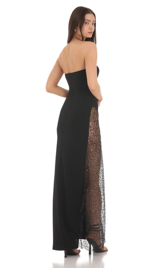 Lucy in the Sky Strapless Mesh Sequin Slit