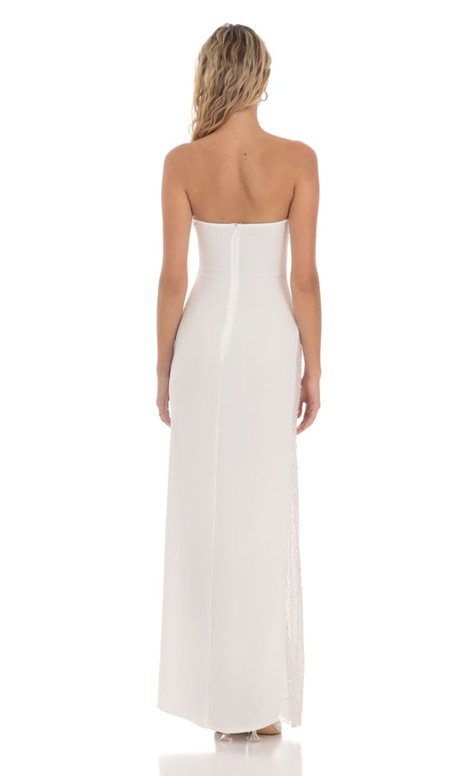 Lucy in the Sky Strapless Mesh Sequin Slit in White