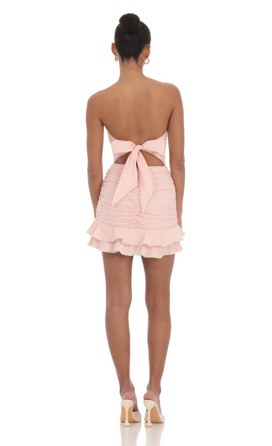 Lucy In The Sky Strapless Ruched A-line Dress in Pink