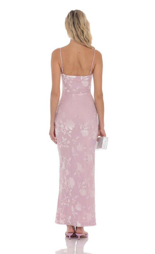 Lucy In The Sky Velvet Floral Cowl Neck Maxi Dress in Lilac