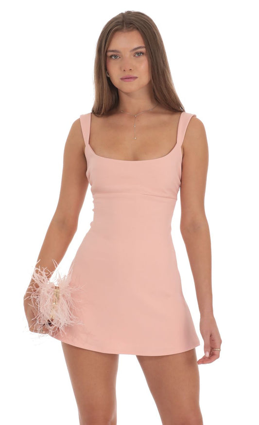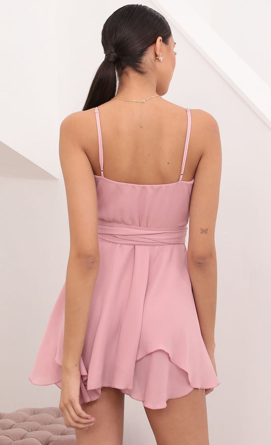 Lucy In The Sky Wide Strap Flare Dress in Dusty Pink