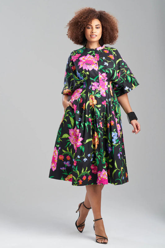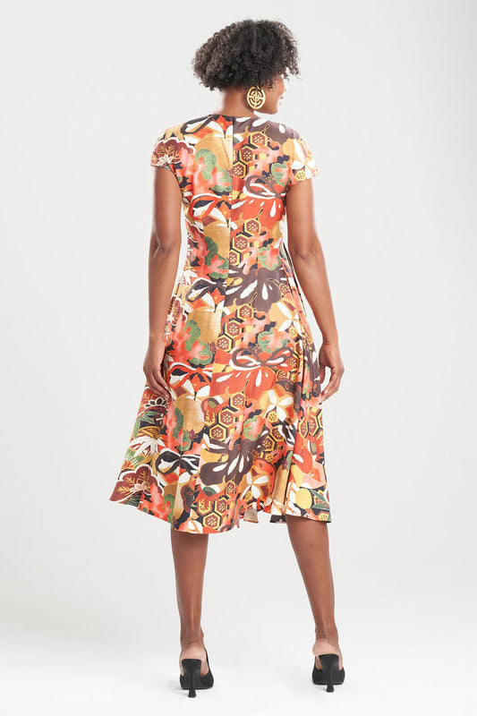 Natori Ikebana Printed Cotton Silk Drape Dress