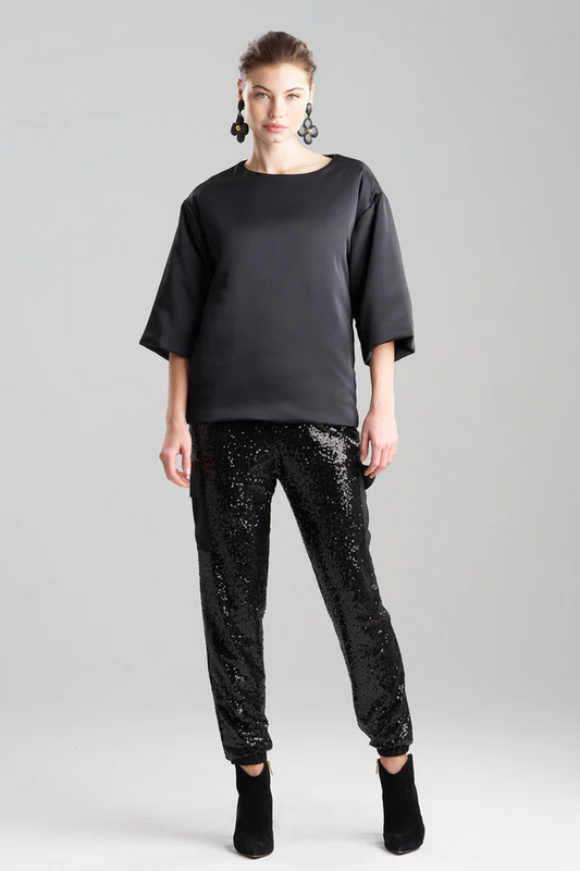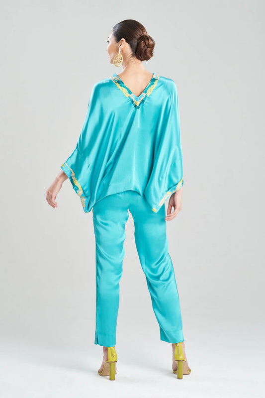 Natori Key Essentials Embroidered Kimono Sleeve Silk Top