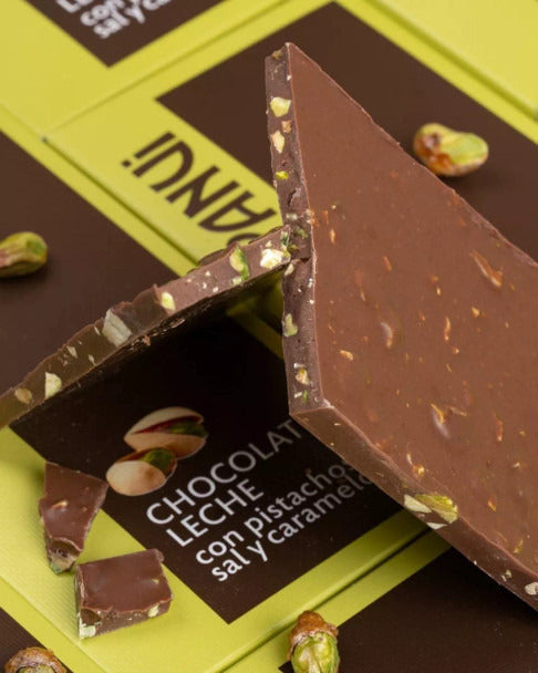 Pampa Direct Rapanui Milk Chocolate Pistachio Salt & Caramel Bar, 100 g / 3.53 oz